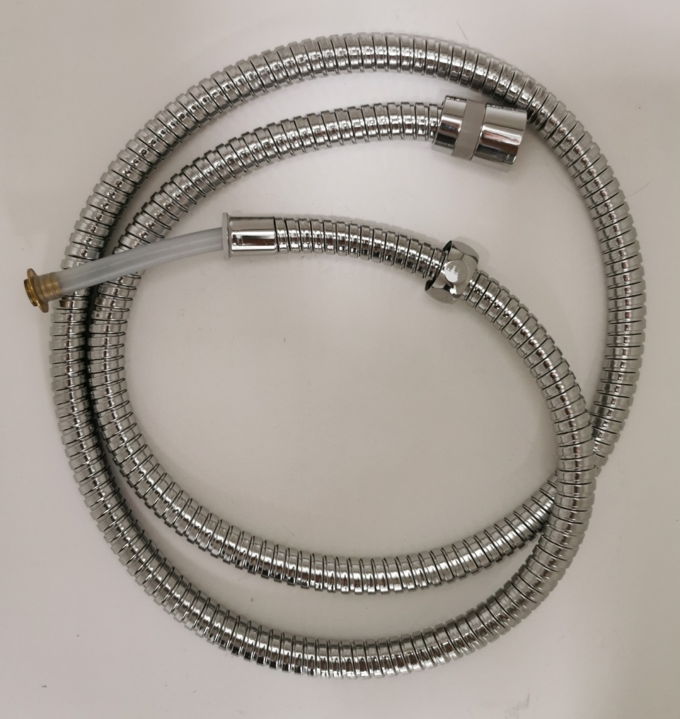 Наружная оплетка. Внешняя оболочка душевого шланга изготовлена из узкой полосы, навитой по спирали с небольшим нахлестом витков. В качестве материала могут использоваться: