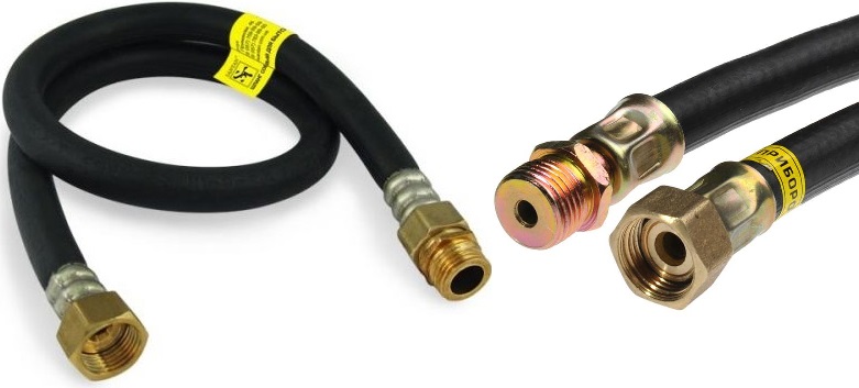 Этот тип шлангов изготавливается из стабилизированной резины, которая в своей массе армируется прочными капроновыми нитями. Длина резинового рукава чаще всего варьируется в пределах от 1,2 до 4 метров. Срок службы изделия в среднем составляет от 2 до 5 лет. При длительной эксплуатации резина может растрескиваться, повышая риск утечки газа, поэтому нужно внимательно следить за состоянием подводки. Шланг рассчитан на работу с давлением до 0,5 МПа, что соответствует максимальным нагрузкам в бытовом газопроводе.