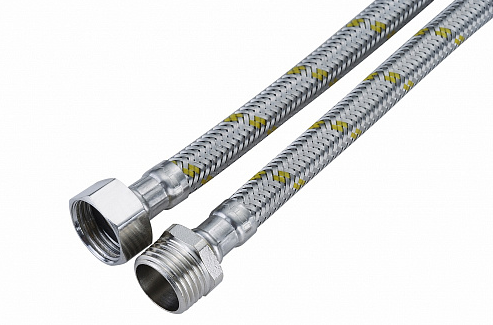Обратите внимание! Внешне газовые шланги с металлической оплеткой напоминают аналогичные изделия для горячей и холодной воды. Но рукава для газа всегда имеют желтую полосу в оплетке, что позволяет их безошибочно идентифицировать.