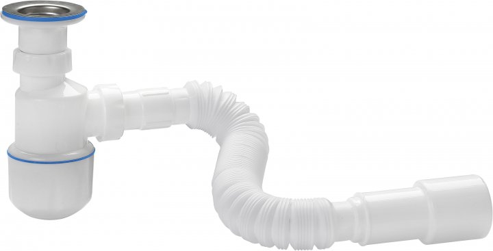 Гофрированные. Такие сифоны изготавливаются из полипропиленовых гофрированных патрубков. Они отличаются повышенной гибкостью и пластичностью, что позволяет устанавливать их в условиях ограниченного пространства. Засоренный сифон можно легко демонтировать, выпрямить гофру и очистить ее от скопившихся загрязнений.