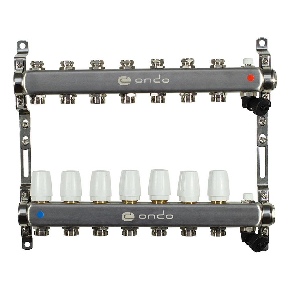 Коллекторная группа ONDO нерж сталь 7 вых. в сборе с термостатическими и запорными клапанами, отзывы (0 )