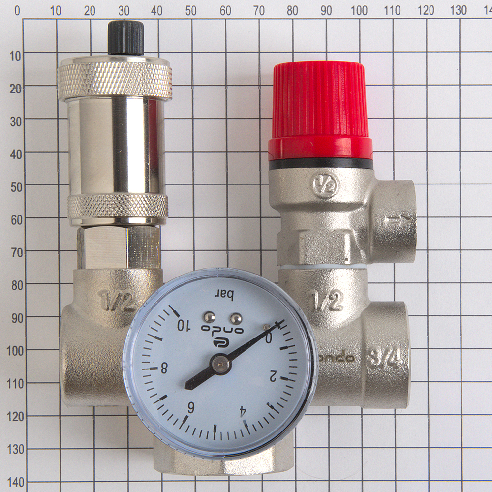- манометр радиальный, диапазон измерения до 10 бар, необходимый для визуального контроля давления воды;