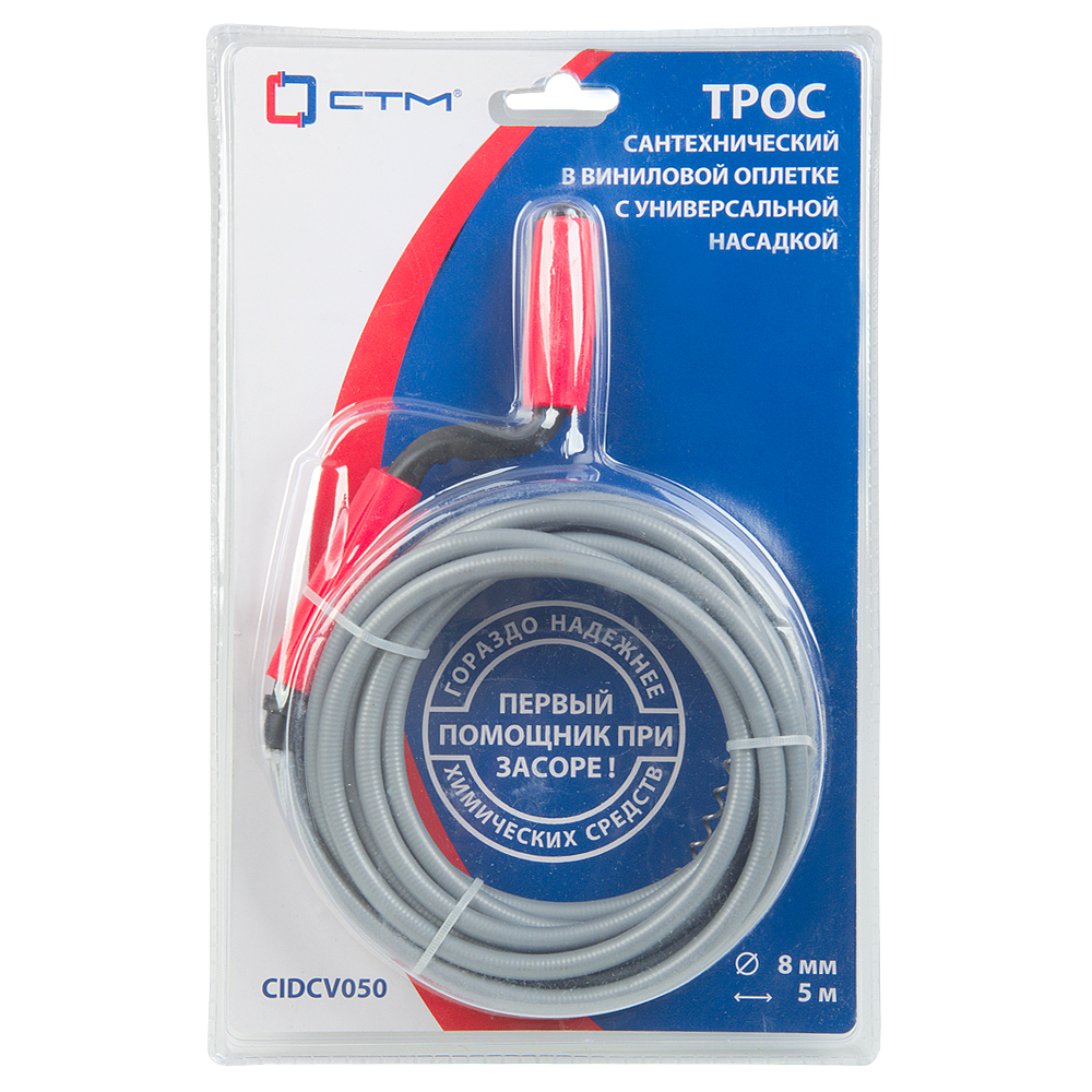 Трос в виниловой оплетке с ершиком и ручкой 5,0 м СТМ - трос для удаления засоров. Длина троса 5 метров.