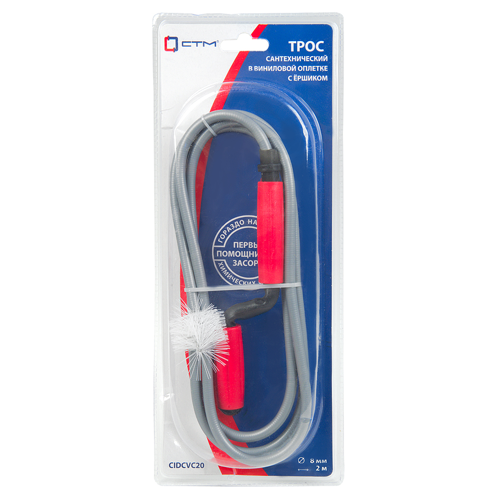 Трос в виниловой оплетке с ершиком и ручкой 2,0 м СТМ - трос сантехнический для удаления засора. Длина троса 2 метра.