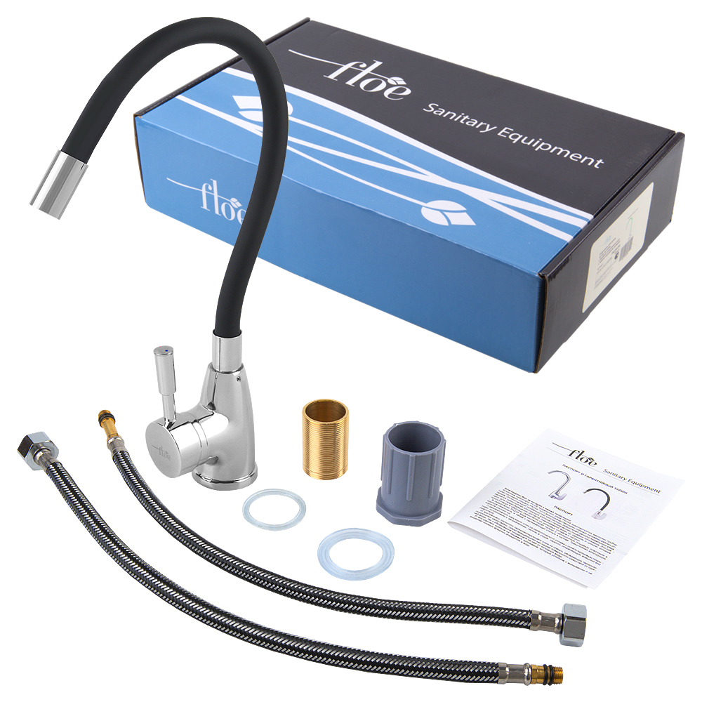 Смеситель FLOE FK234-DN для кухни, 40 мм, на гайке,с бок.штыревой ручкой,с гибким черным изливом, отзывы (0 )