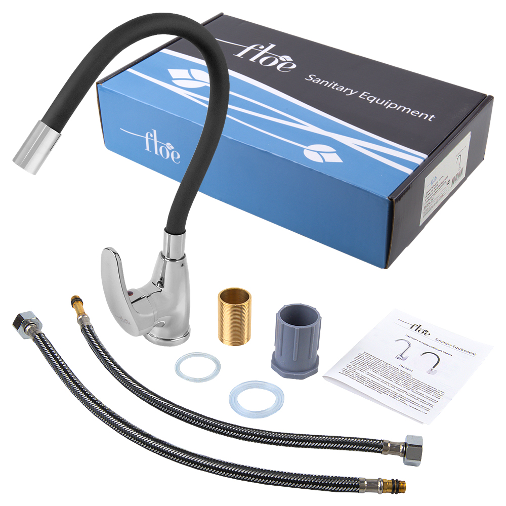 Смеситель FLOE FK234-GN для кухни, 40 мм, на гайке, с боковой ручкой, с гибким черным изливом, отзывы (0 )
