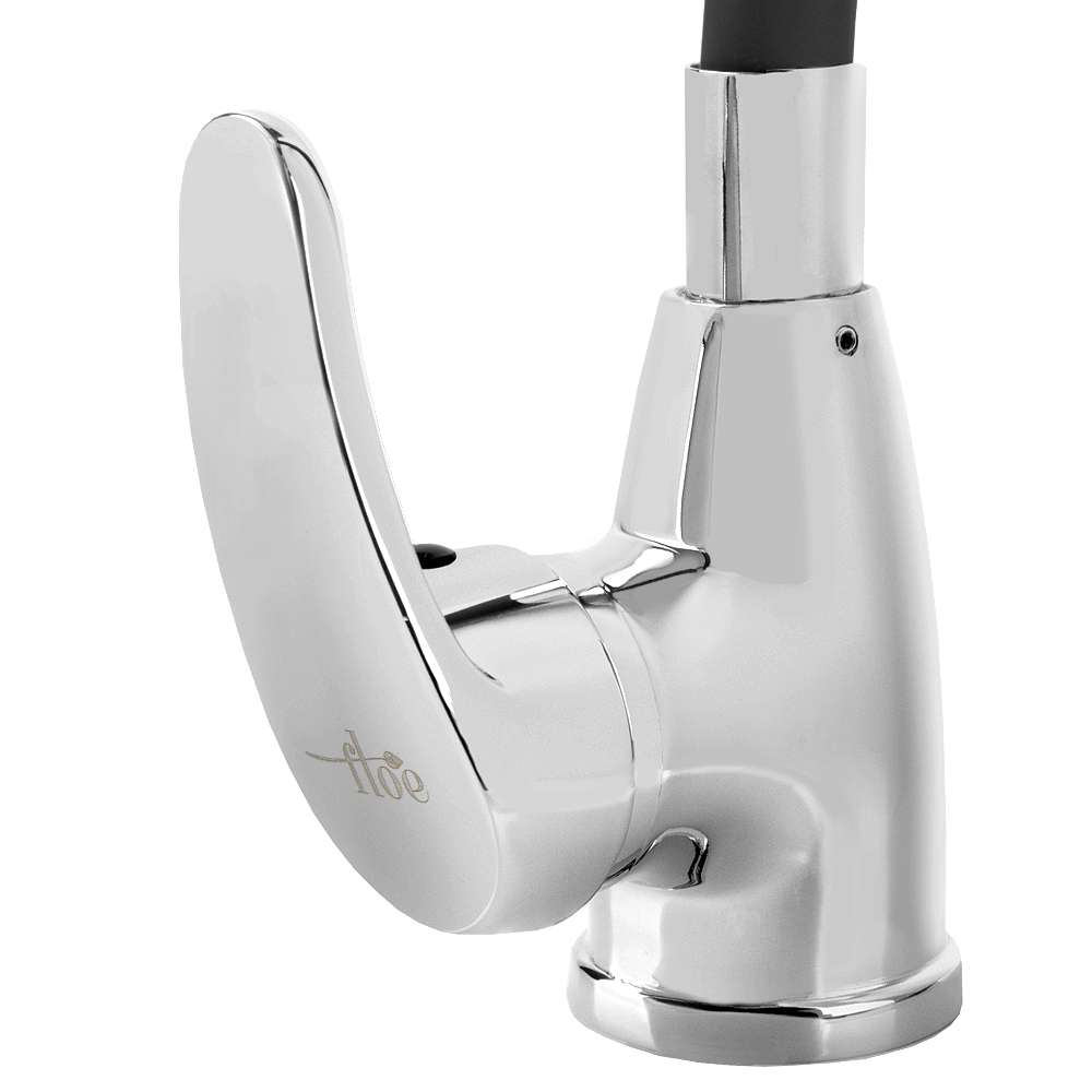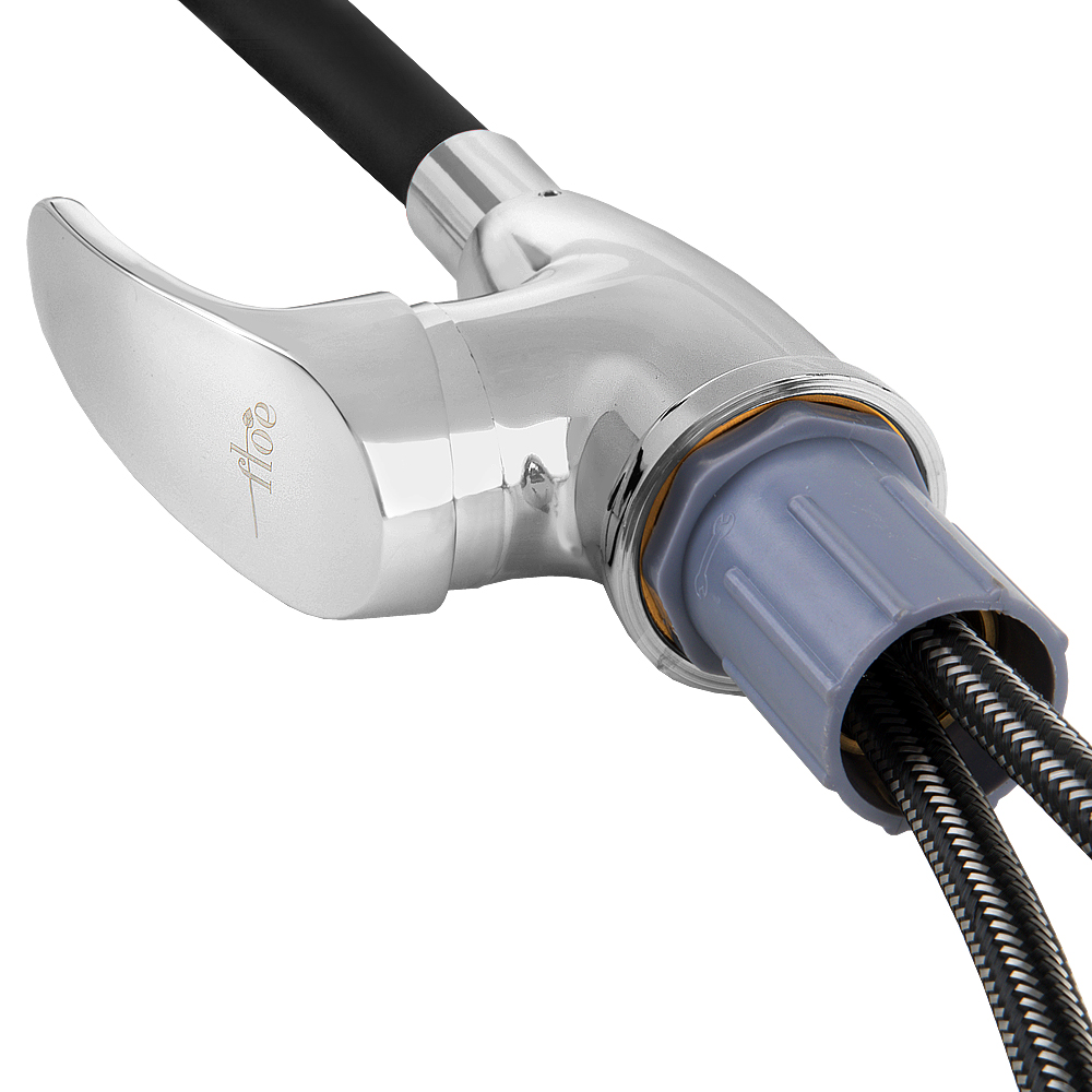 Смеситель FLOE FK234-GN для кухни, 40 мм, на гайке, с боковой ручкой, с гибким черным изливом
