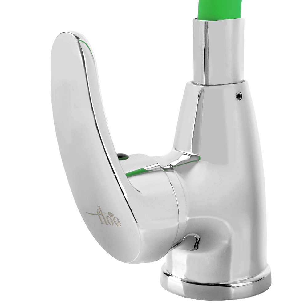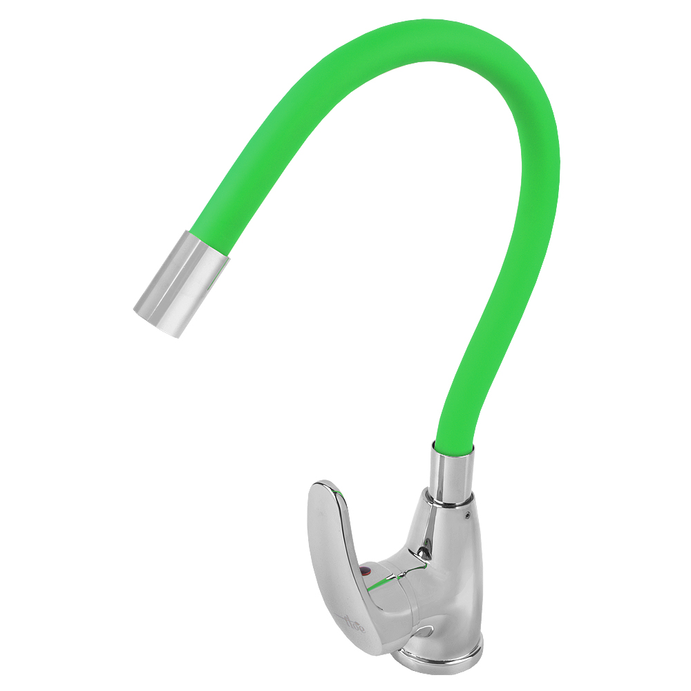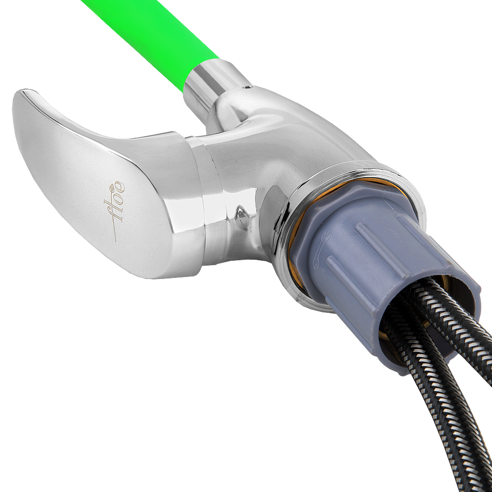 Смеситель FLOE FK234-GG для кухни, 40 мм, на гайке, с боковой ручкой, с гибким салатовым изливом