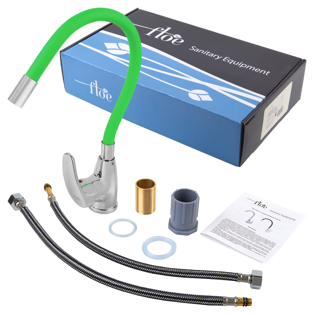 Смеситель FLOE FK234-GG для кухни, 40 мм, на гайке, с боковой ручкой, с гибким салатовым изливом, отзывы (0 )