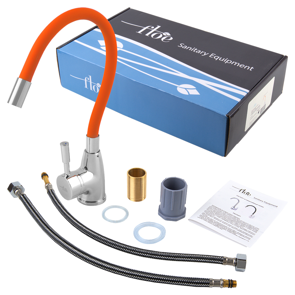 Смеситель FLOE FK234-DO для кухни, 40 мм, на гайке,с бок.штыревой ручкой,с гибким оранжевым изливом, отзывы (0 )