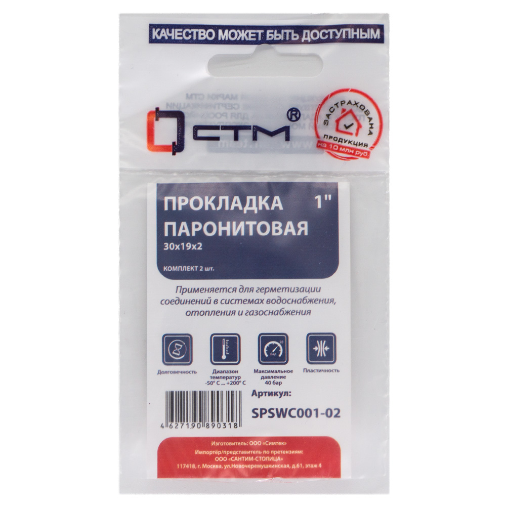 Прокладка 1" паронит 30х19х2 мм (2шт) СТМ