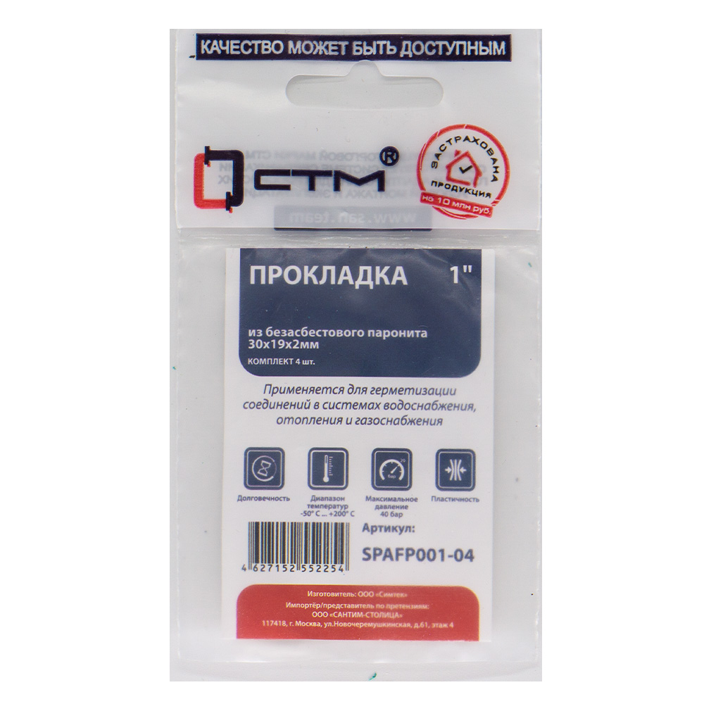 Набор прокладок из безасбестового паронита 1" * 30х19, h=2мм (4шт) СТМ