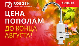 Информируем вас о начале акции. С 21 по 31 августа смеситель ROEGEN RT053A c проточным водонагревателем по цене 1099 рублей при покупке от 10 штук!